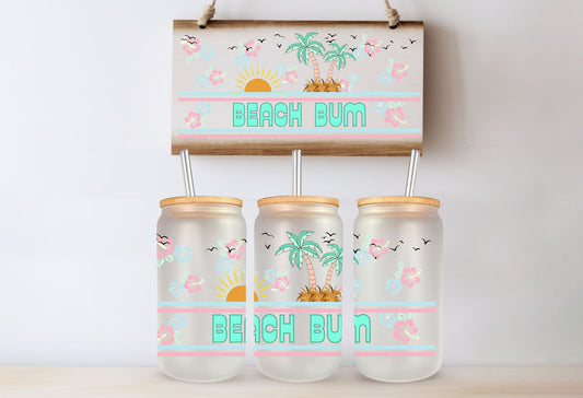 Tasse en vitre 16 oz givré / 16 oz frosted cup - BEACH BUM
